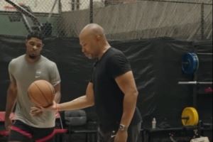 亨德森接受“老鱼”费舍尔特训指导 后者脱鞋详解投篮姿势